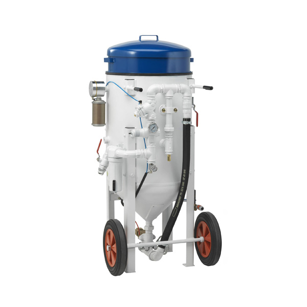 Blasting is activated using a foot pedal. The abrasive flow can be adjusted using a dosing system.